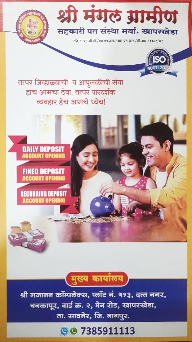 श्री मंगल ग्रामीण क्रेडिट पतसंस्था सहकारी सोसायटी लि. सदस्यत्व अनेक उत्पादने, सेवा आणि वैशिष्ट्यांसह येते जे तुम्हाला ऑनलाइन, जाता-जाता किंवा शाखेत तुमची वैयक्तिक आर्थिक वाढ आणि व्यवस्थापित करू देते. तुमच्या आर्थिक भागीदाराकडून तुम्हाला हवे ते सर्व आहे.